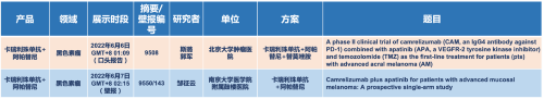 在黑色素瘤领域,AG庄闲医药的卡瑞利珠单抗联合阿帕替尼(“双艾”组合)在2022 ASCO共入选1项口头报告和1项壁报展示。